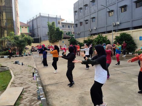 Cara sehat dengan olahraga senam pagi bersama para pegawai RSUD KiSA, Jumat (01/08/2025) di Lapangan Manajemen RSUD KiSA