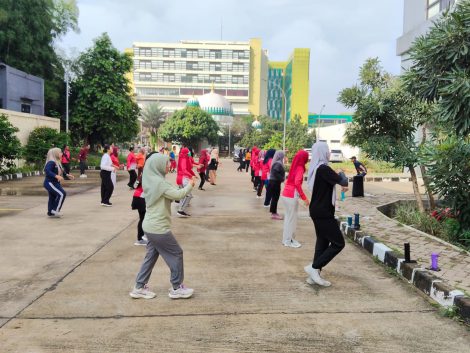 Sehat Bersama Pegawai RSUD KiSA Kota Depok dengan Senam pagi di Hari Pendidikan Nasional, Halaman Gedung Manajemen, Jumat (02/5/2025)