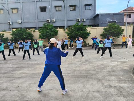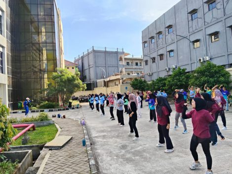 Kembali sehat dan bugar di bulan april. Para pegawai RSUD KiSA mengikuti senam pagi bersama instruktur di halaman parkir Gedung Manajemen, Jumat (10/04/2026)